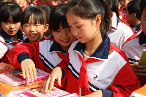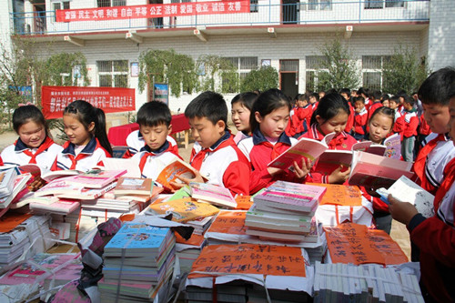 10月中旬的一天,我公司總經理安總帶著一分陽光——專業人士精心挑選的書籍,涵蓋了中外名著、科普、情感、推理、繪本、學習輔導等種類的優秀圖書共500多冊,走進了新鄉封丘的小學,希望用這份陽光可以為守護孩子們的夢想添一份力。