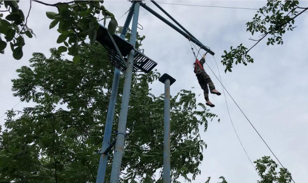 3、高空抓桿——高空抓杠是拓展訓練的項目之一,非常的有挑戰性。要求隊員爬上一根9米高的柱子,站在其頂端無任何依附物并微晃的圓盤上,平伸雙臂,奮力跳出去抓住正前上方懸掛著的單杠。高空抓杠項目在所有的拓展項目中是非常經典的一個,這是一項極具個人挑戰性的項目,只有勇氣信心毅力和智慧兼具的人才能順利完成。通過高空抓杠體會到團隊的鼓勵和支持對于個人能力的發揮起的重要作用,從而主動地在組織內建立這種良好的文化氣氛。這項任務對于不恐高的我來說完美的完成了!