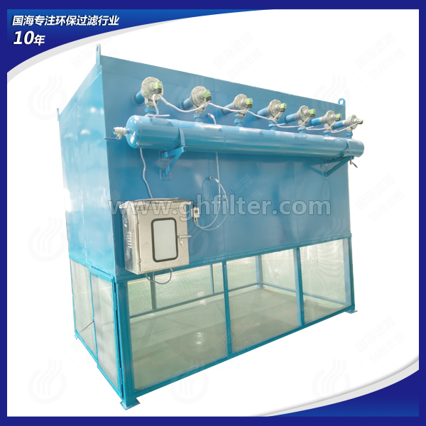 自潔過程: 含塵空氣氣經過濾后,塵埃被吸附在高效過濾筒上,由 PLC 按設定時間順序進行反吹自潔過程, 當阻損值超過 600 帕時,由 PLC 按差壓順序控制反吹自潔過程(反吹時間為 0.1-0.2 秒)。其它高效過濾筒照常工作,塵埃被反吹自潔下來。