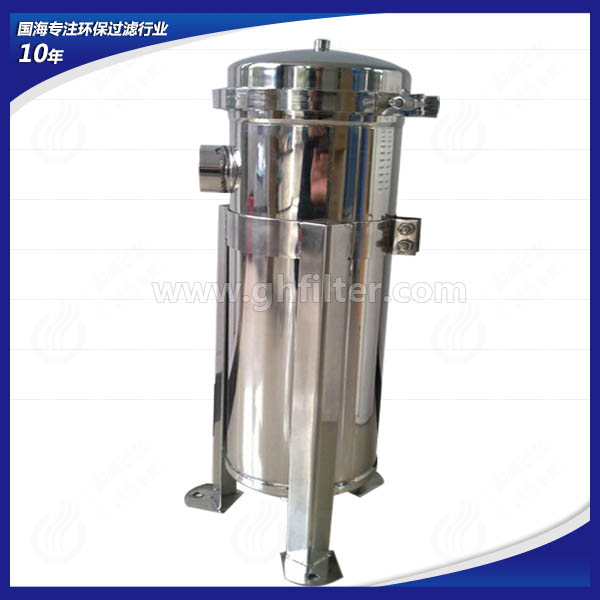新鄉市國海濾器生產的不銹鋼保安過濾器大都采用不銹鋼做外殼,內部裝過濾濾芯(例如PP棉),主要用在多介質預處理過濾之后,反滲透、超濾等膜過濾設備之前。過濾器用來濾除經多介質過濾后的細小物質(例如微小的石英沙,活性炭顆粒等),以確保水質過濾精度及保護膜過濾元件不受大顆粒物質的損壞。精密過濾裝置內裝的過濾濾芯精度等級可分為0.5μs,1μs,5μs,10μs等,根據不同的使用場合選用不同的過濾精度,以保證后出水精度及保證后級膜元件的安全。采用PP棉、尼龍、熔噴等不同材質作濾芯,去除水中的微小懸浮物,細菌及其它雜質等,使原水水質達到反滲透膜的進水要求