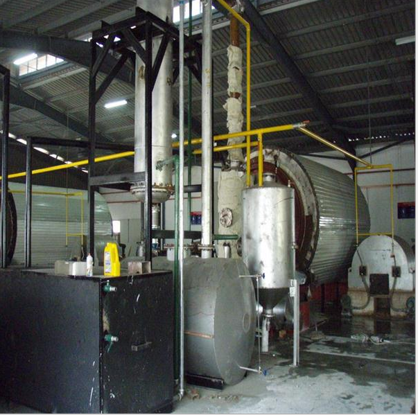 將需要深加工的粗油通過油泵抽入再沸器,在減壓的狀態(tài)下催化加熱,餾出油蒸汽,油氣通過冷凝過濾器,可液化部分,冷凝為成品油,不可液化部分通過燃?xì)庀到y(tǒng)送入熱風(fēng)爐燒掉。