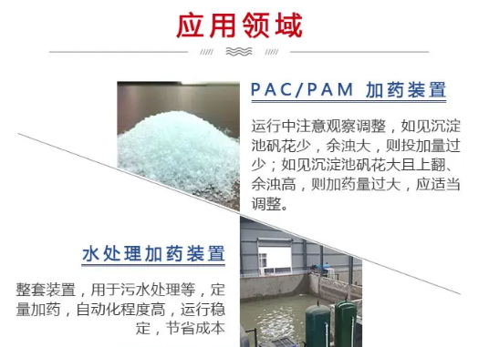 4、自動化程度高,加藥均勻準確。通過微電腦加藥控制器(計量泵)控制加藥量,除了定期向溶藥桶內投加藥劑外,無須任何人工操作,節約了大量人力,加藥量更準確。