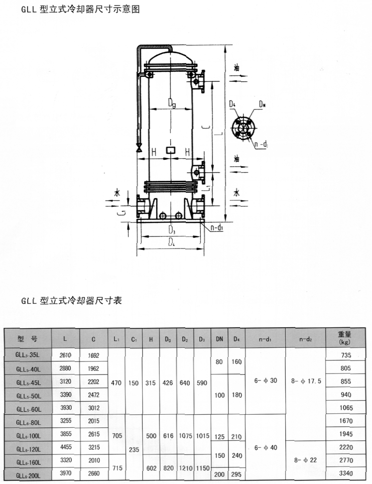 三、GLL型立式冷卻器尺寸示意圖
