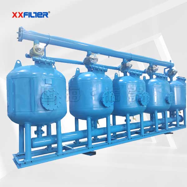 5罐淺層砂過濾器750T/H由多個標準高速砂缸單元組成,過濾器內部設有獨特的布水器和集水器,擁有獨特的雙向自動沖洗閥,可實現在正常系統運行中多個標準高速砂缸逐個單獨的反沖洗,全自動程序控制。具有反沖洗用水量小,設備安裝方便,易于操作等優點,該設備流量大、無需維護。根據不同的用戶要求,有立式和臥式兩個系列,適用于工業和民用循環水系統的水質處理。